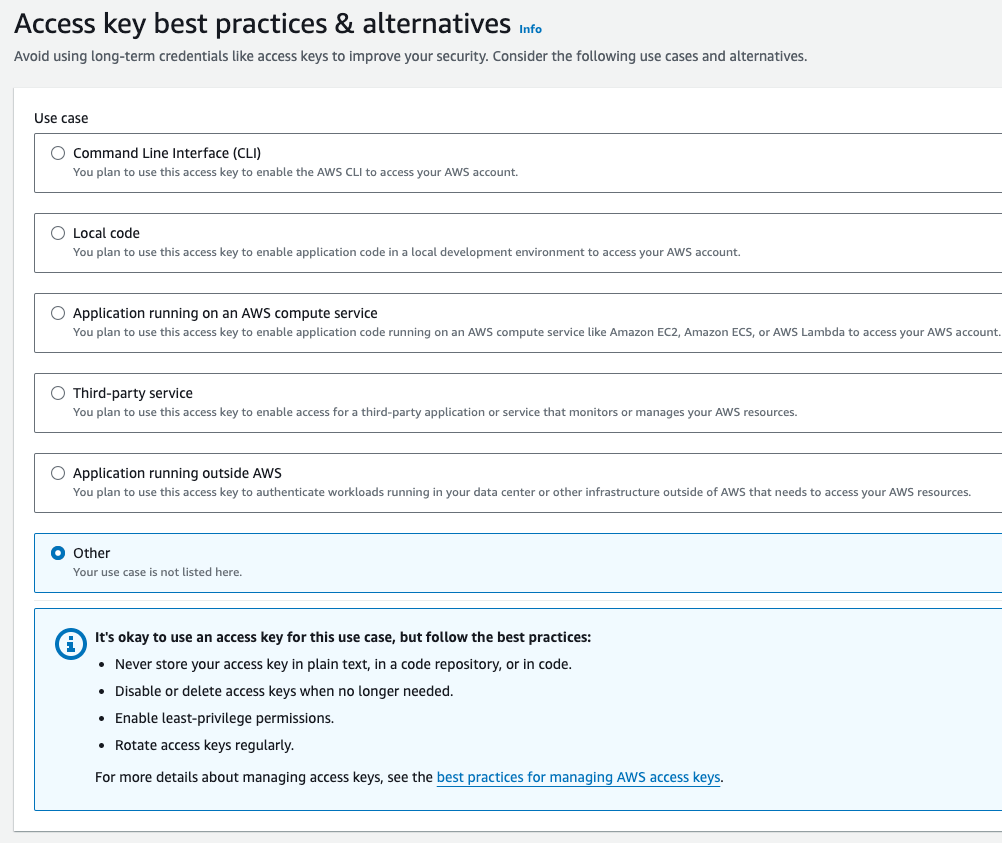 Recently I wanted to set up nightly backups of my Postgres databases hosted on Neon.tech. Yes, they have backups and PITR but I knew I’d feel better if I had backups just in case. My business runs on AWS and so S3 was the obvious destination. I took this as an opportunity to look into what Amazon wants you to use for authenticating instead of having to click the shameful “Other” button (aka “Please just give my access id and secret that I’ve been using for over a decade”).